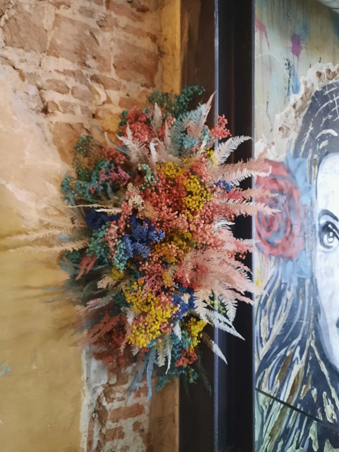 Realizo instalaciones florales con flor artificial o preservada y en ocasiones se combinan con las flores de papel.